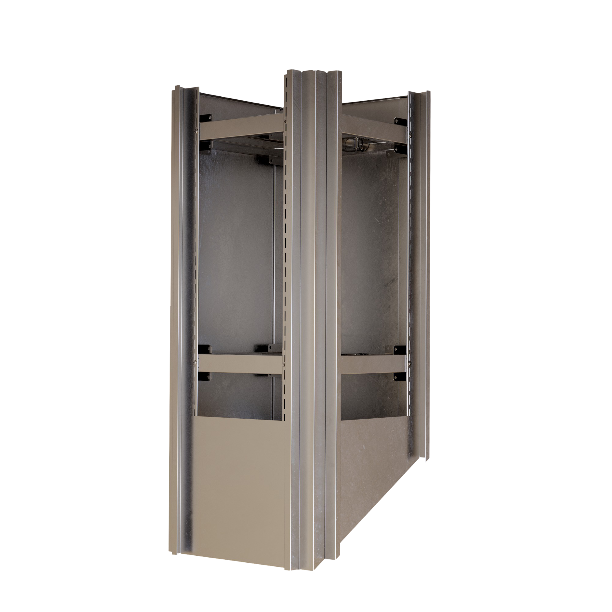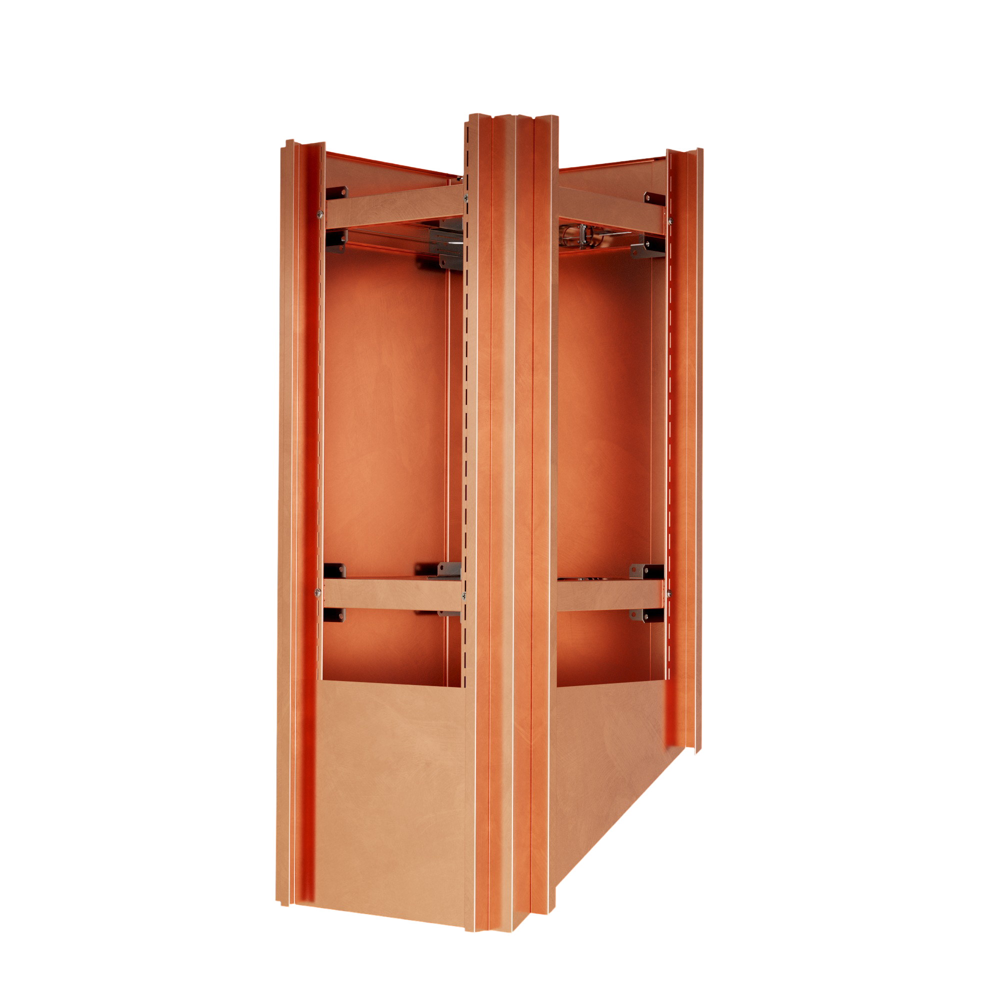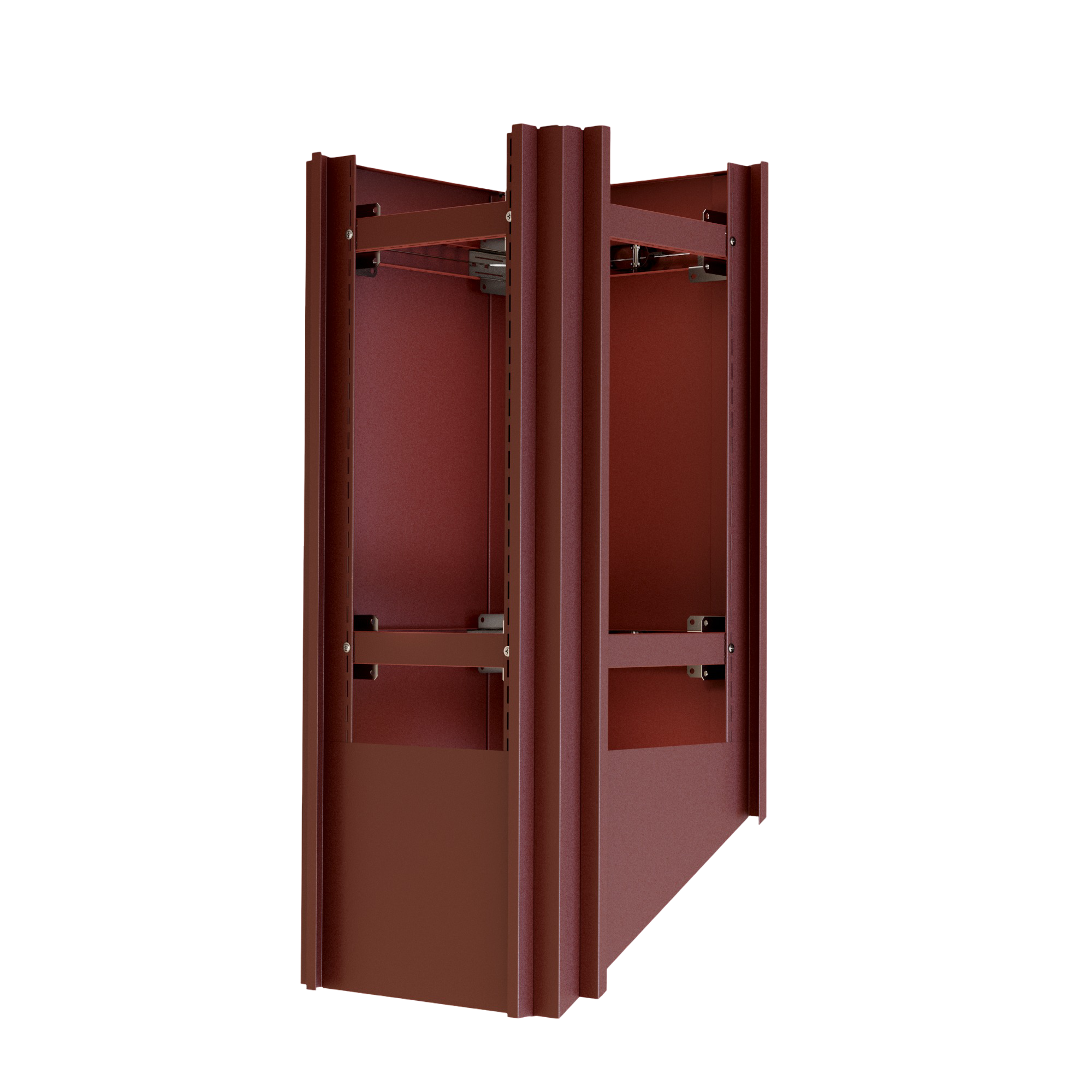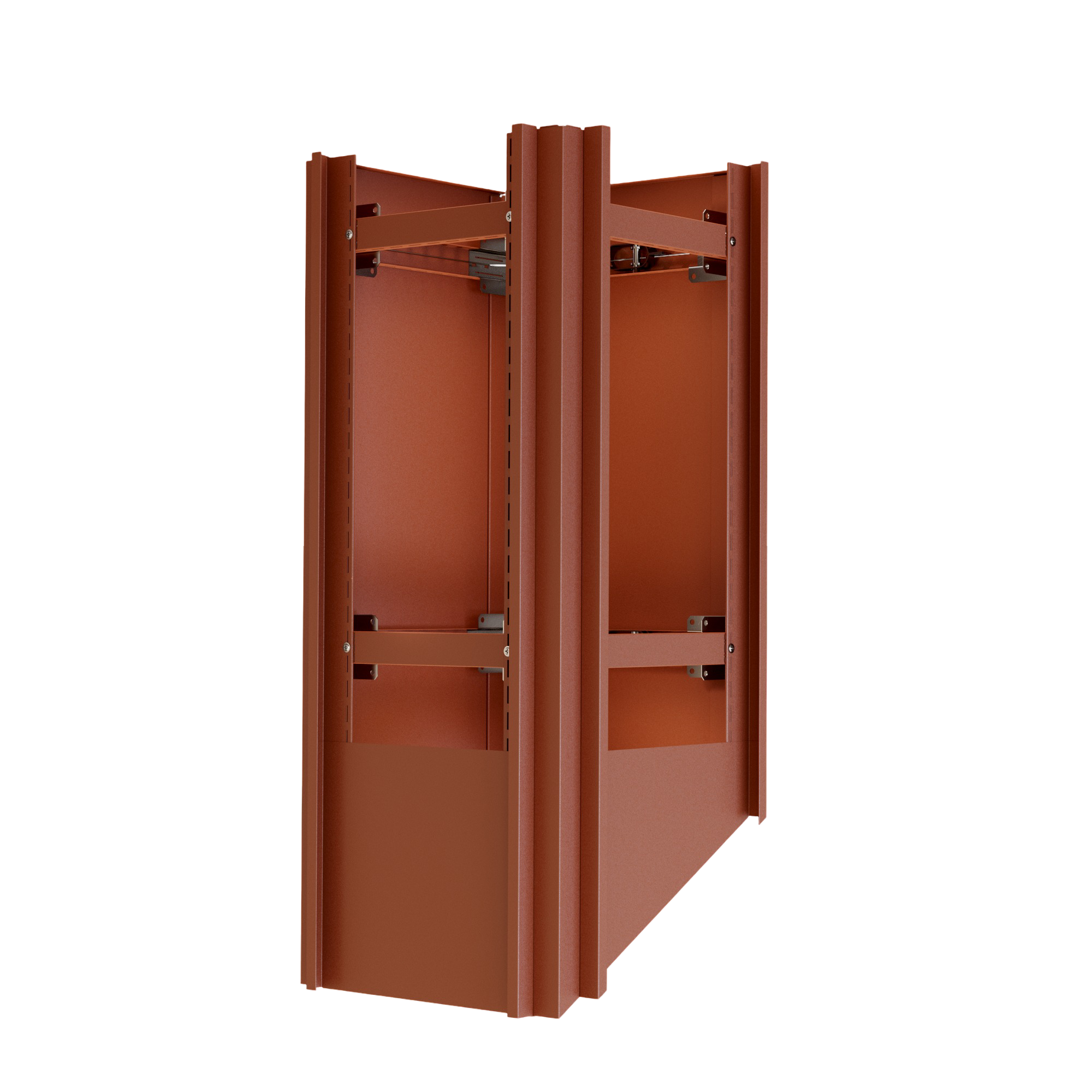 Kazetové oplechování využívá unikátní montážní systém PorTec s fixačními rohovníky a španovacím lankem. Tento samo-upínací systém eliminuje potřebu vrtání do tělesa komína, což je ideální pro komíny zateplené minerální vatou nebo izolačními deskami.