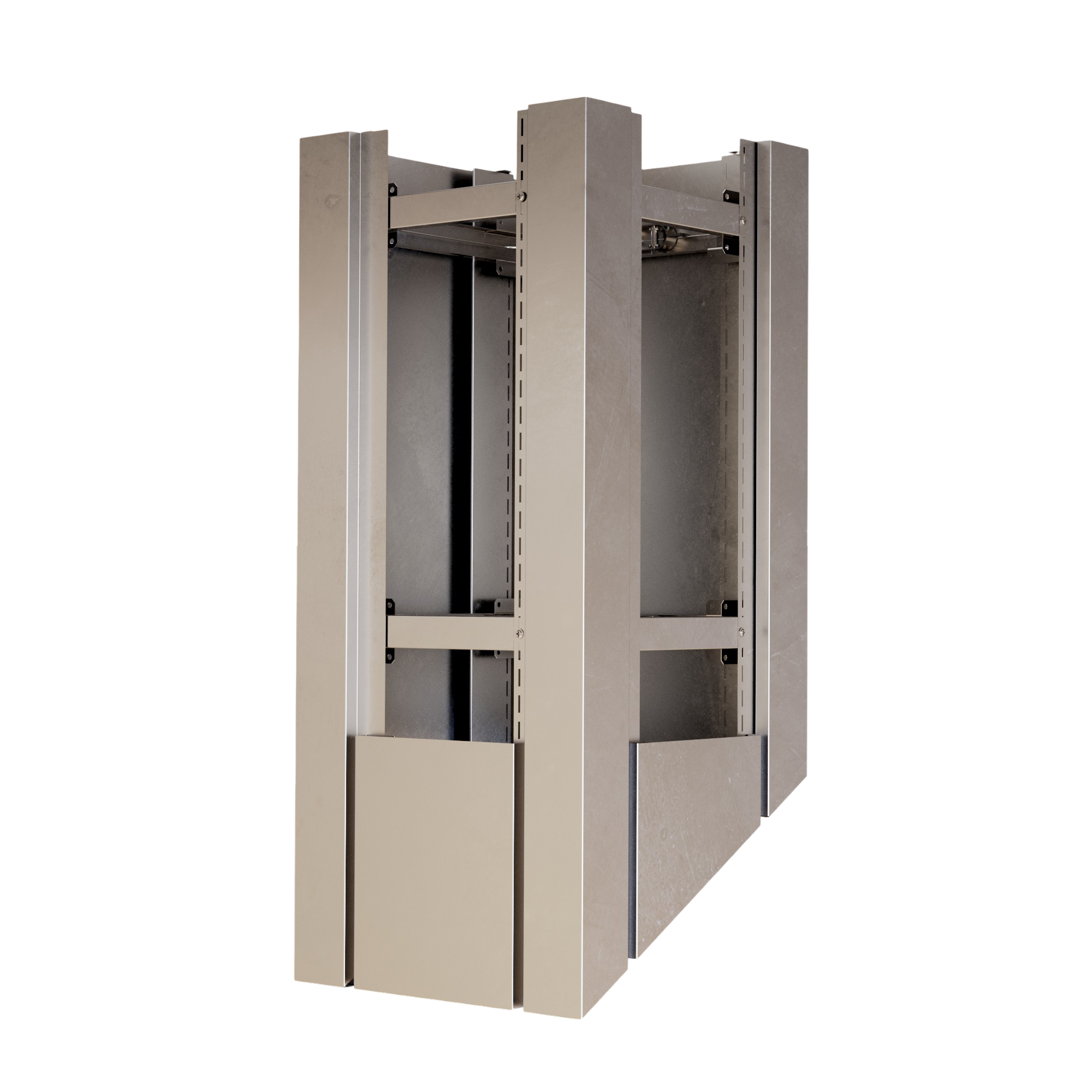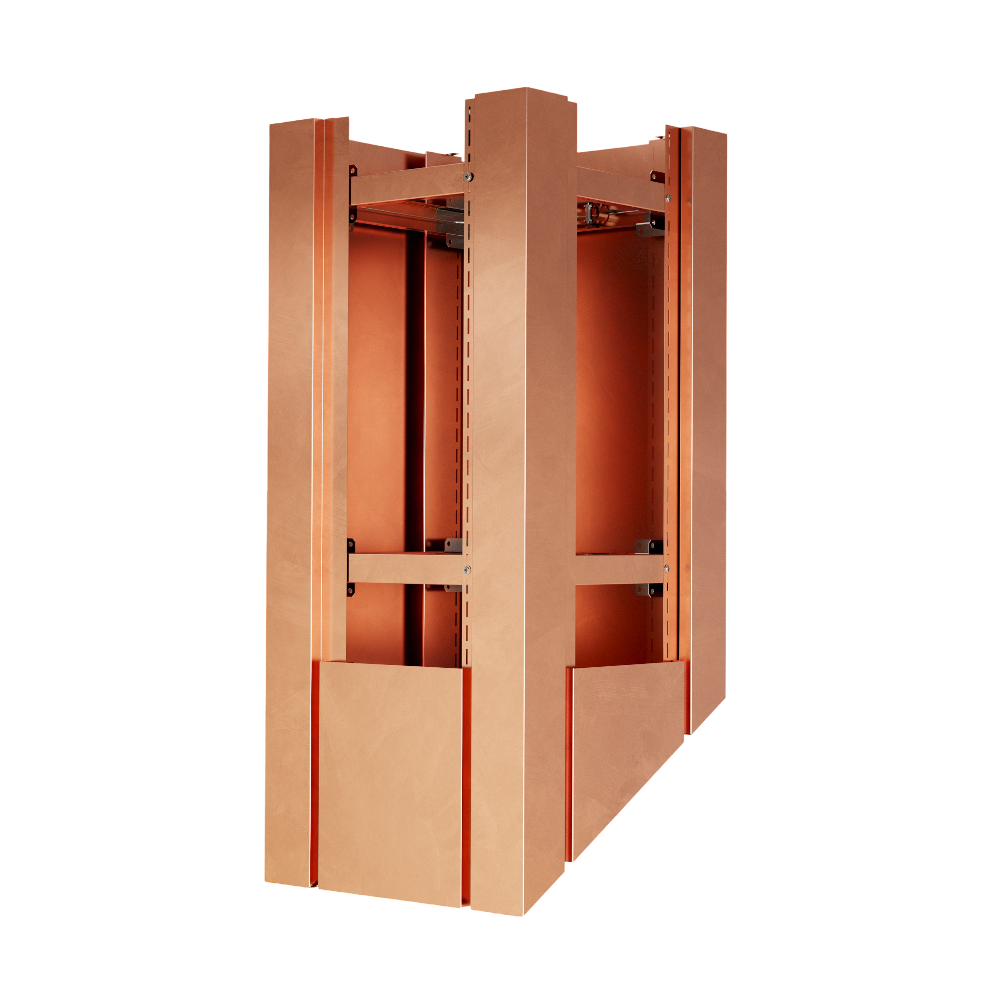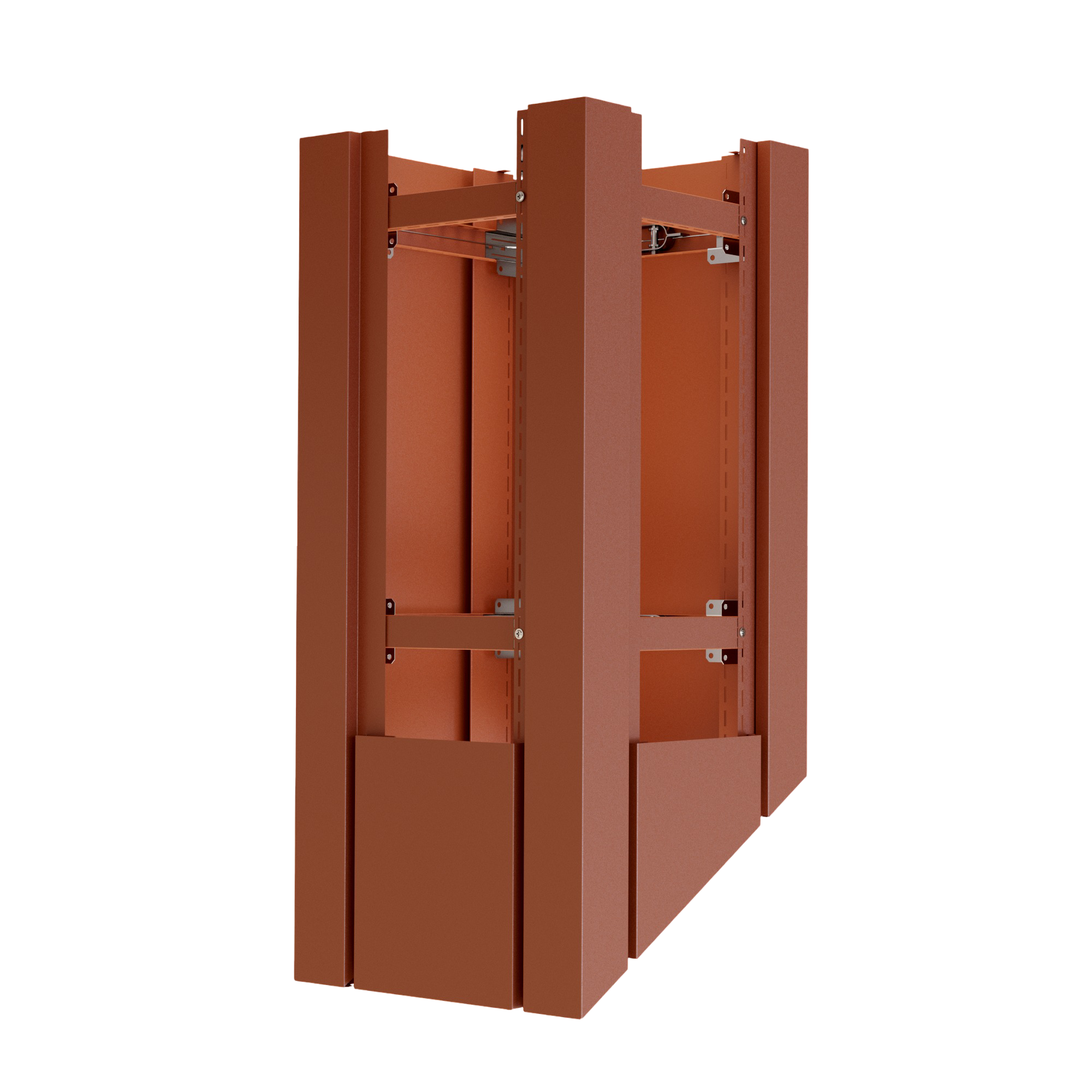 Kazetové oplechování využívá unikátní montážní systém PorTec s fixačními rohovníky a španovacím lankem. Tento samo-upínací systém eliminuje potřebu vrtání do tělesa komína, což je ideální pro komíny zateplené minerální vatou nebo izolačními deskami.